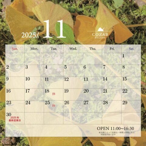 25.10.3011月営業日【お知らせ】11月営業日のお知らせです。 銀杏並木が見頃の時期ですので、11月前半は原則お休みなし、お天気と相談しながらの営業とさせていただきます。 後半、冷え込みが厳しくなるようであれば、平日は臨時休業が多くなるかもしれません。 ストーリーズでお知らせいたしますので、ご確認のうえご来店くださいませ。